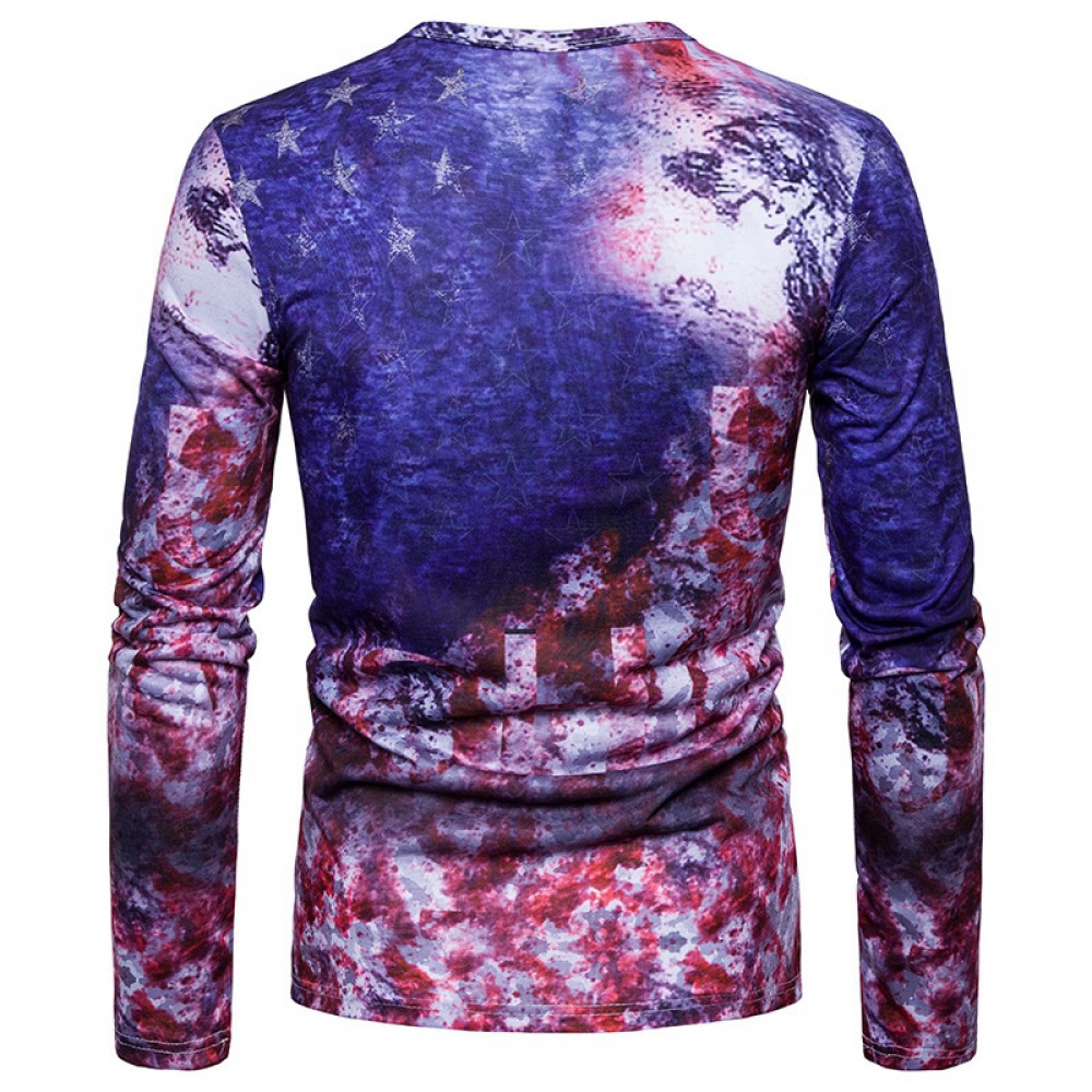 Fashion Men's Casual Long Sleeve Slim Skull Digital Print T-Shirt Hot Sale