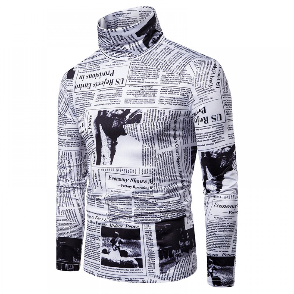 New Men's Large Size 3D English Printing High Neck Long Sleeve T-Shirt Bottoming Shirt