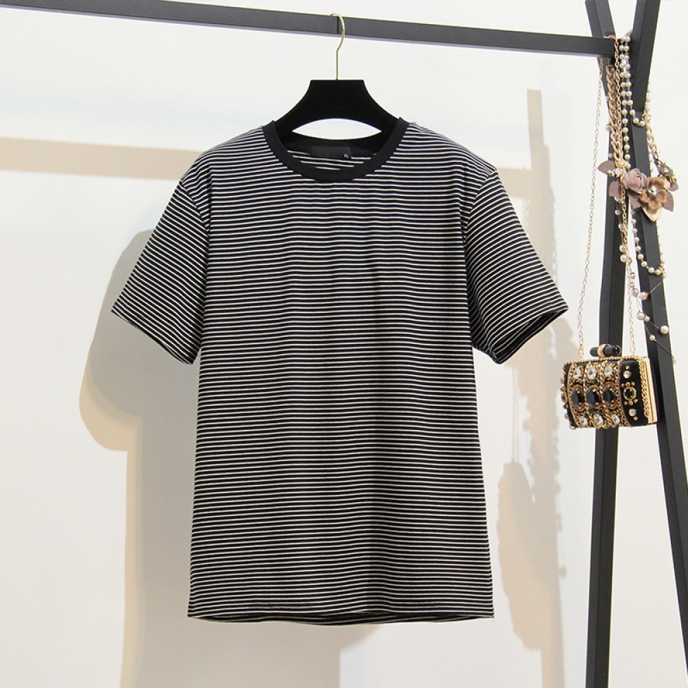 Plus Size Women's Summer Clothing Fat Striped Short-Sleeved T-Shirt