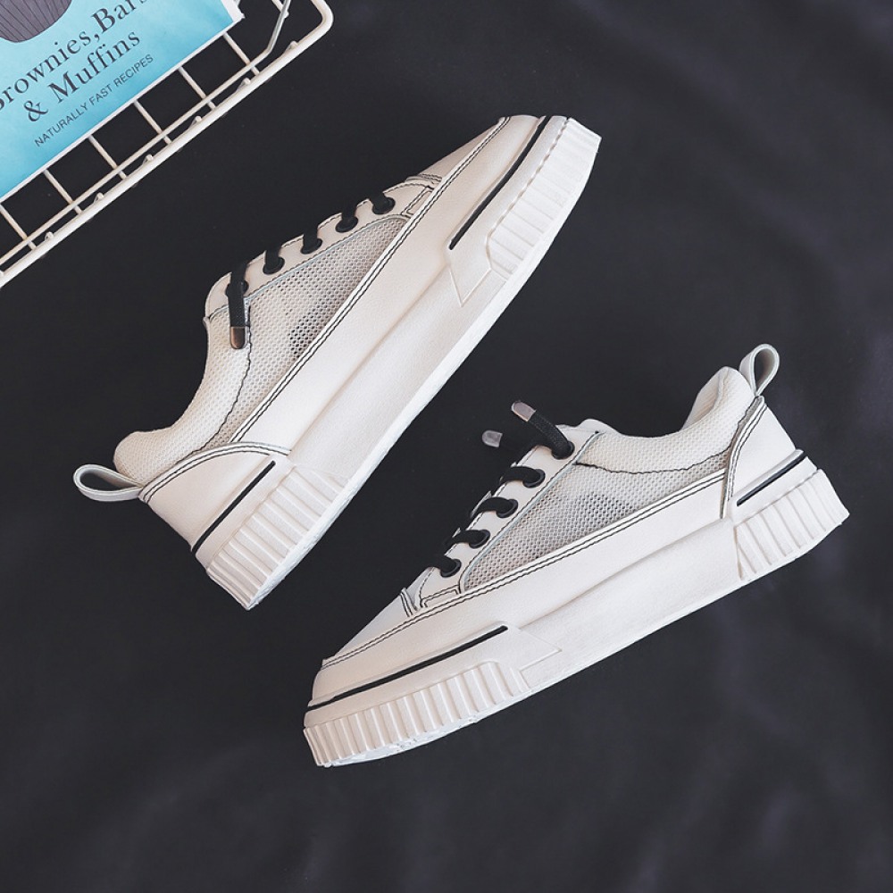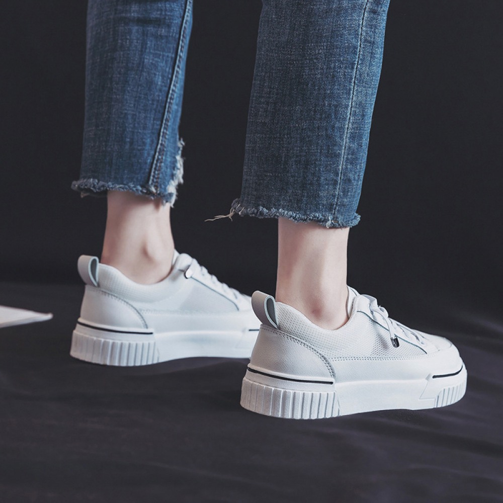 Spring White Running Board Shoes Lace-Up Flat-Bottom Breathable Casual Shoes