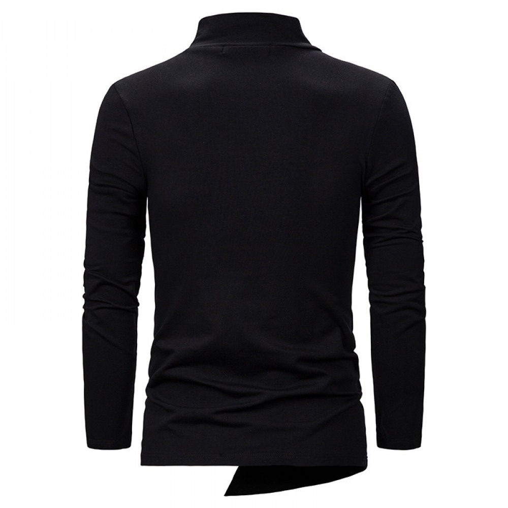 Men's Fashion Pile Collar Oblique Button Design Irregular Cut Slim Long-Sleeved T-Shirt