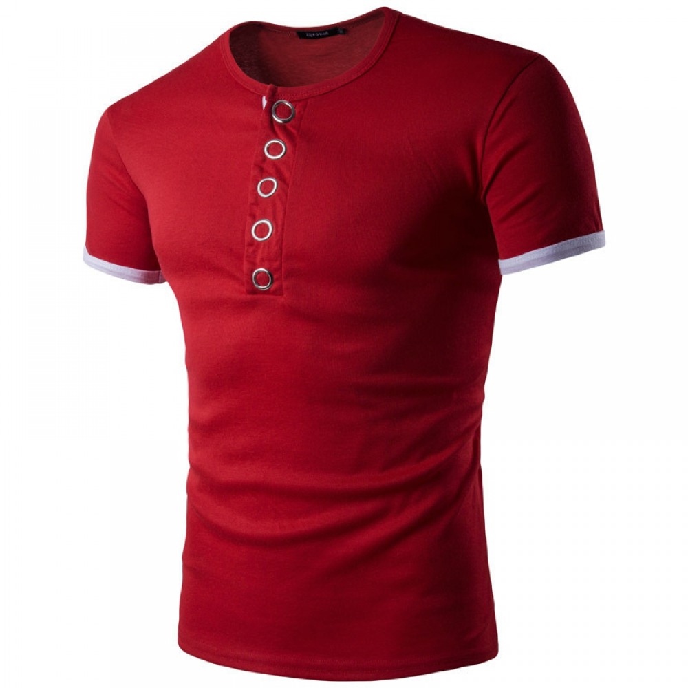 New Summer Men's Placket Knock Button Hit Color Short-Sleeved Bottoming T-Shirt Casual Lapel Bottoming Shirt