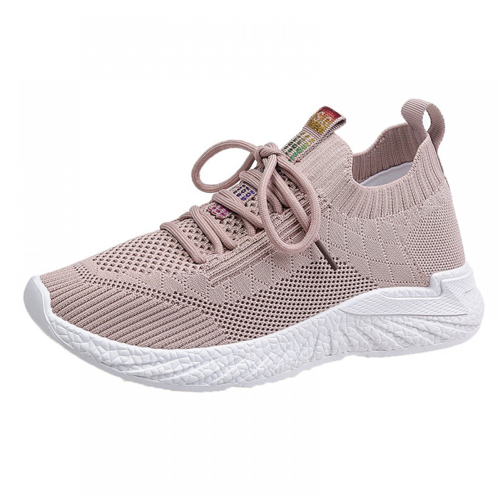 Spring and Summer New Breathable Flying Woven Women's Flat Running Sports Shoes