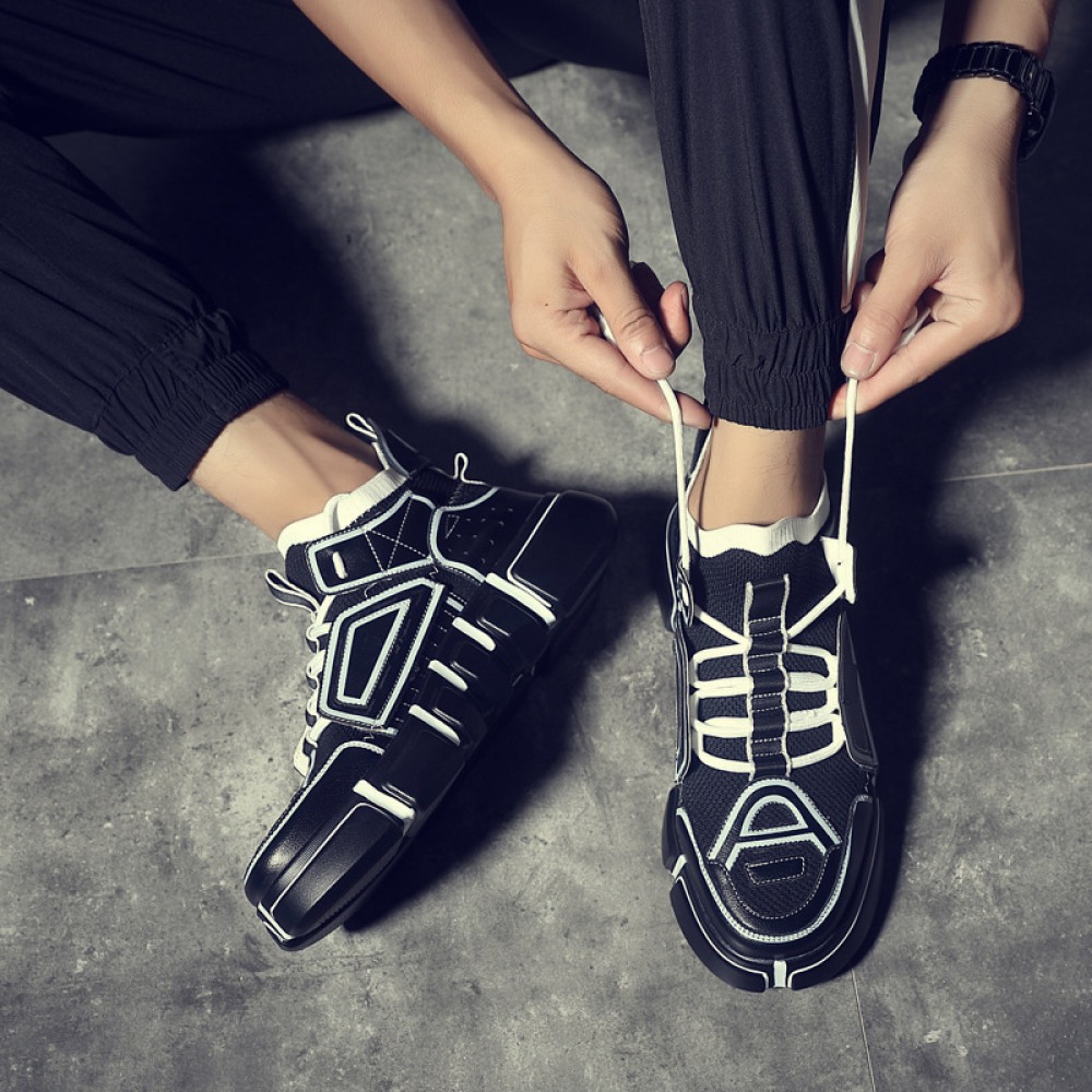 Men's Leather Shoes High-Top Sports Casual Sneakers