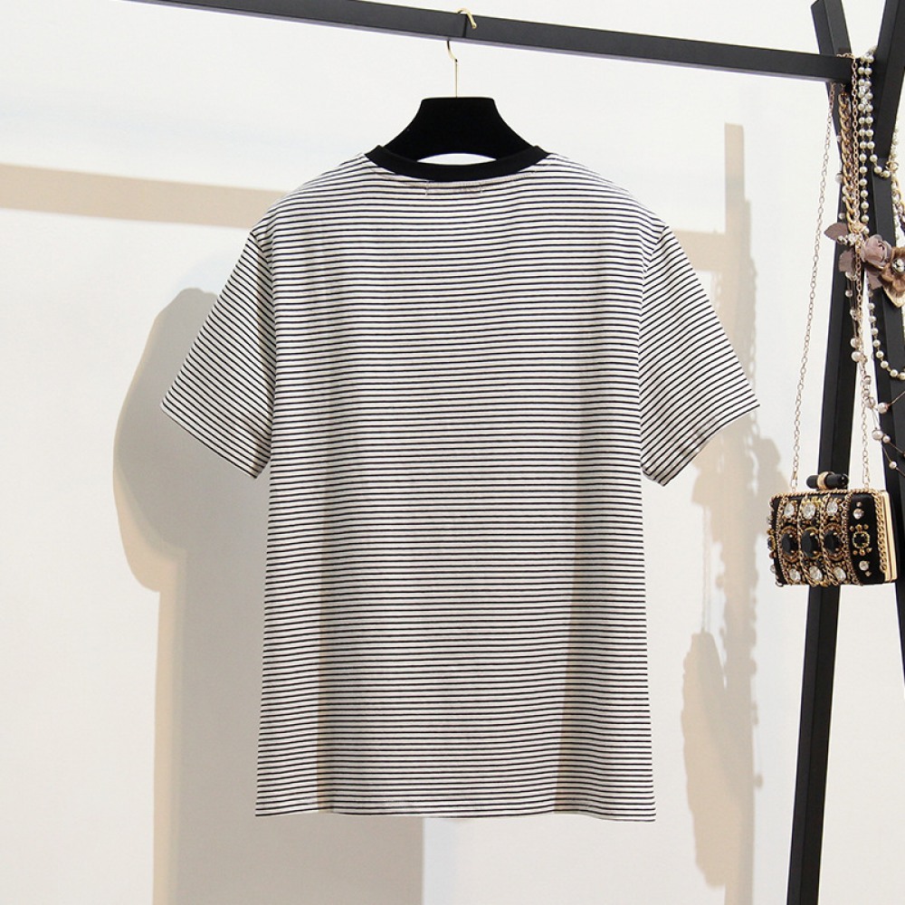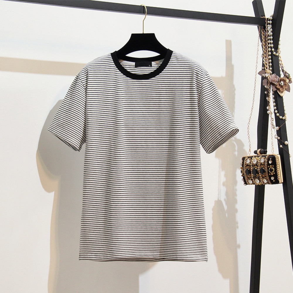 Plus Size Women's Summer Clothing Fat Striped Short-Sleeved T-Shirt